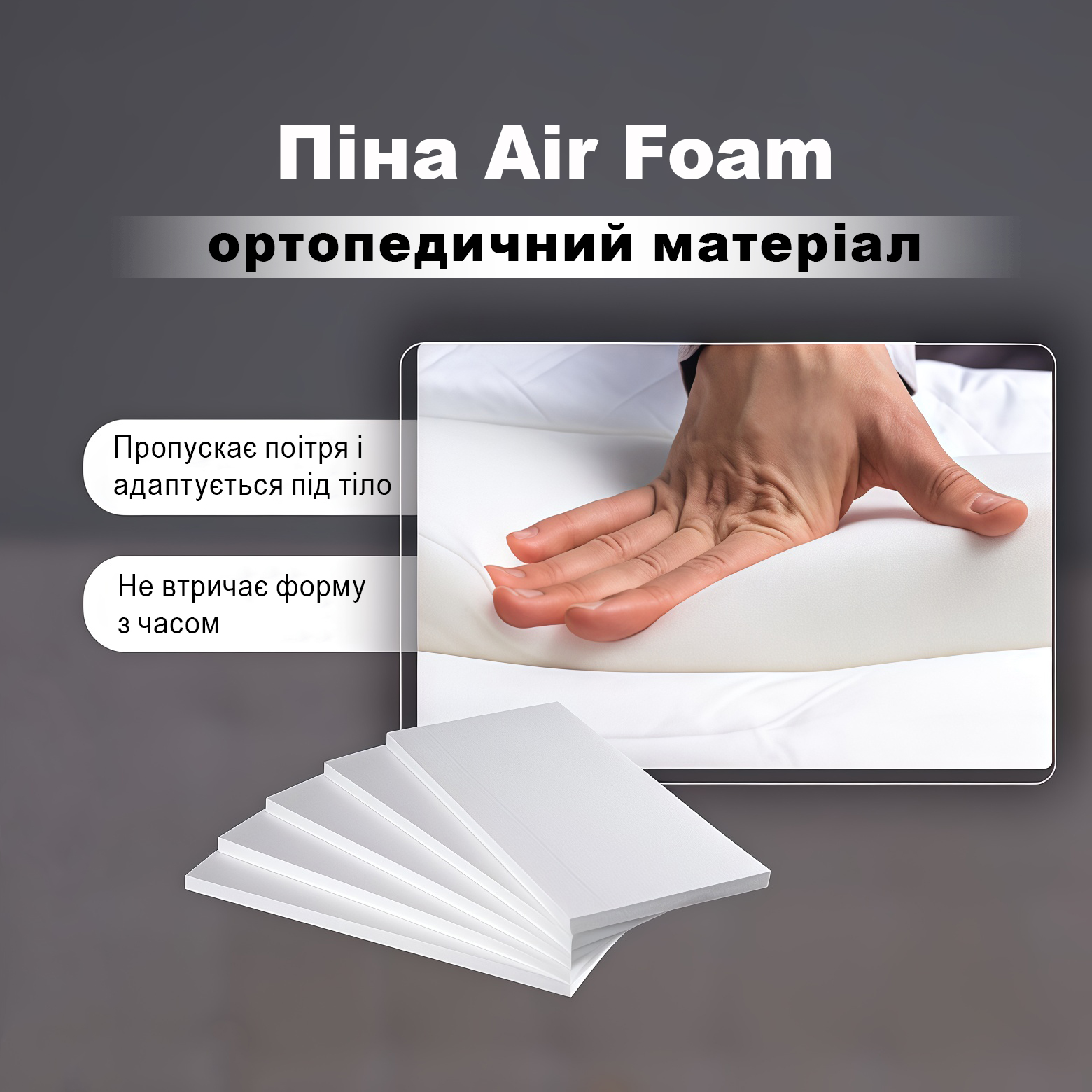 Адаптивність: Піна Air Foam здатна адаптуватися до контурів тіла, що забезпечує правильну підтримку для спини, шиї та суглобів.